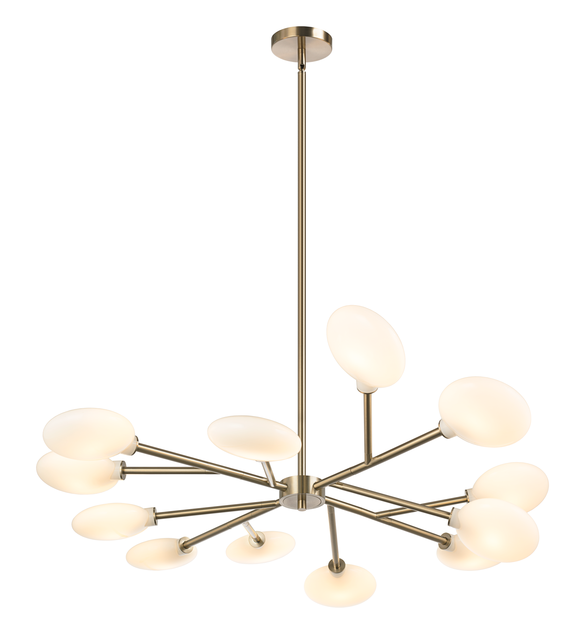 Pivoine. Chef-d’œuvre moderne à la chaleur intemporelle, ce lustre apporte une touche de sophistication contemporaine grâce à ses abat-jour en verre opale éclatants, en forme de galets, disposés en une étoile saisissante. Les éléments en verre plus larges font écho à la beauté sculpturale de notre collection Hortensia. Chaque diffuseur en opale projette une lumière douce et accueillante, alliant ambiance et présence artistique. Disponible en finitions Or Champagne ou Noir Mat. AMPOULES NON INCLUSES