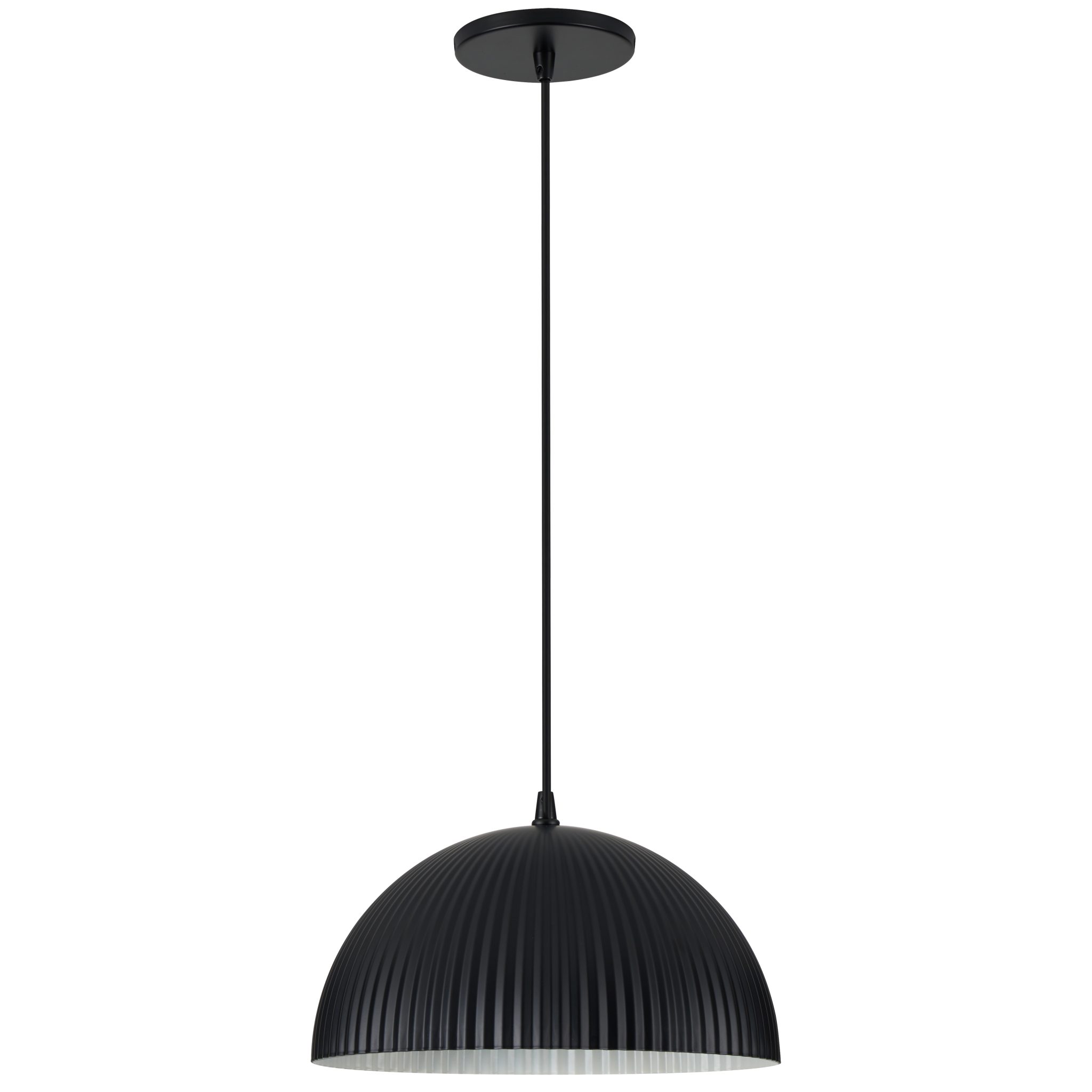 Découvrez REMY Luminaire suspendu, fini noir mat avec intérieur blanc, 11,75po Diamètre, 5,5po Hauteur, 78,5po Hauteur max., 1 x 60W E26