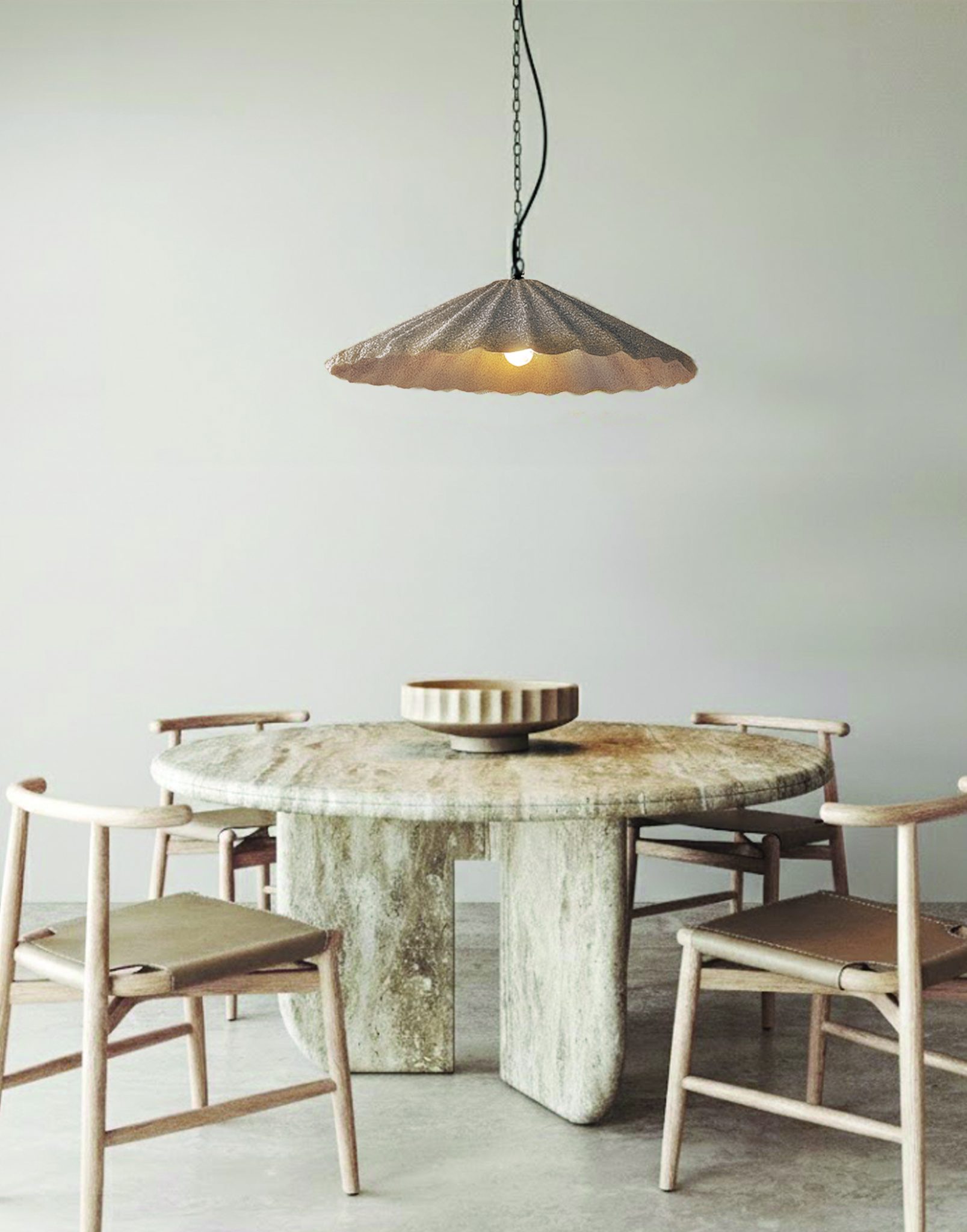 La suspension ROME est une pièce maîtresse mêlant techniques, ciment, fer et fibres naturelles, pour un rendu brut et authentique grâce à sa texture évoquant la pierre. Son abat-jour texturé composite reflète les principes du wabi-sabi, célébrant l’asymétrie, l’imperfection et le charme naturel des matériaux artisanaux. Avec ses 57 cm de diamètre, cette suspension à une ampoule apporte une touche d’élégance discrète, idéale pour les intérieurs minimalistes où l’équilibre et la sérénité sont essentiels. Sa chaîne de 2,13 m permet une installation flexible dans les salles à manger, les cuisines ou les espaces de vie ouverts. Conçue pour une ampoule E26 de 40 W, ROME diffuse une lumière douce et apaisante tout en mettant en valeur sa forme sculpturale. À la fois biophilique et contemporaine, cette suspension unit nature, art et design en un luminaire raffiné.