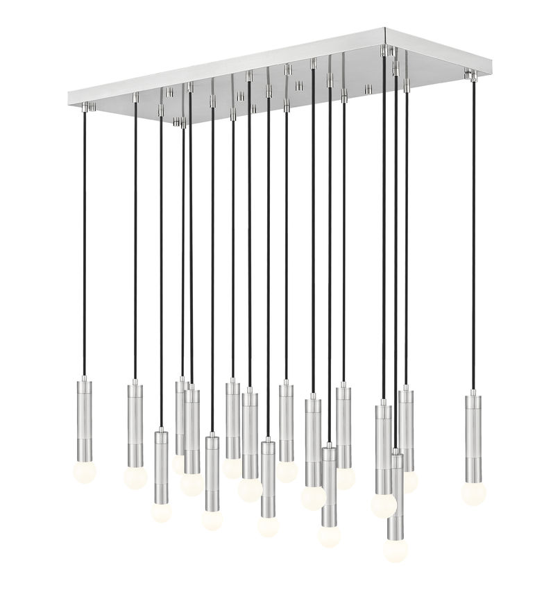 Découvrez STARI Luminaire suspendu fini nickel brossé, 42po Longueur, 11po Hauteur, 197,4po Hauteur max., 17 x 60W, E26