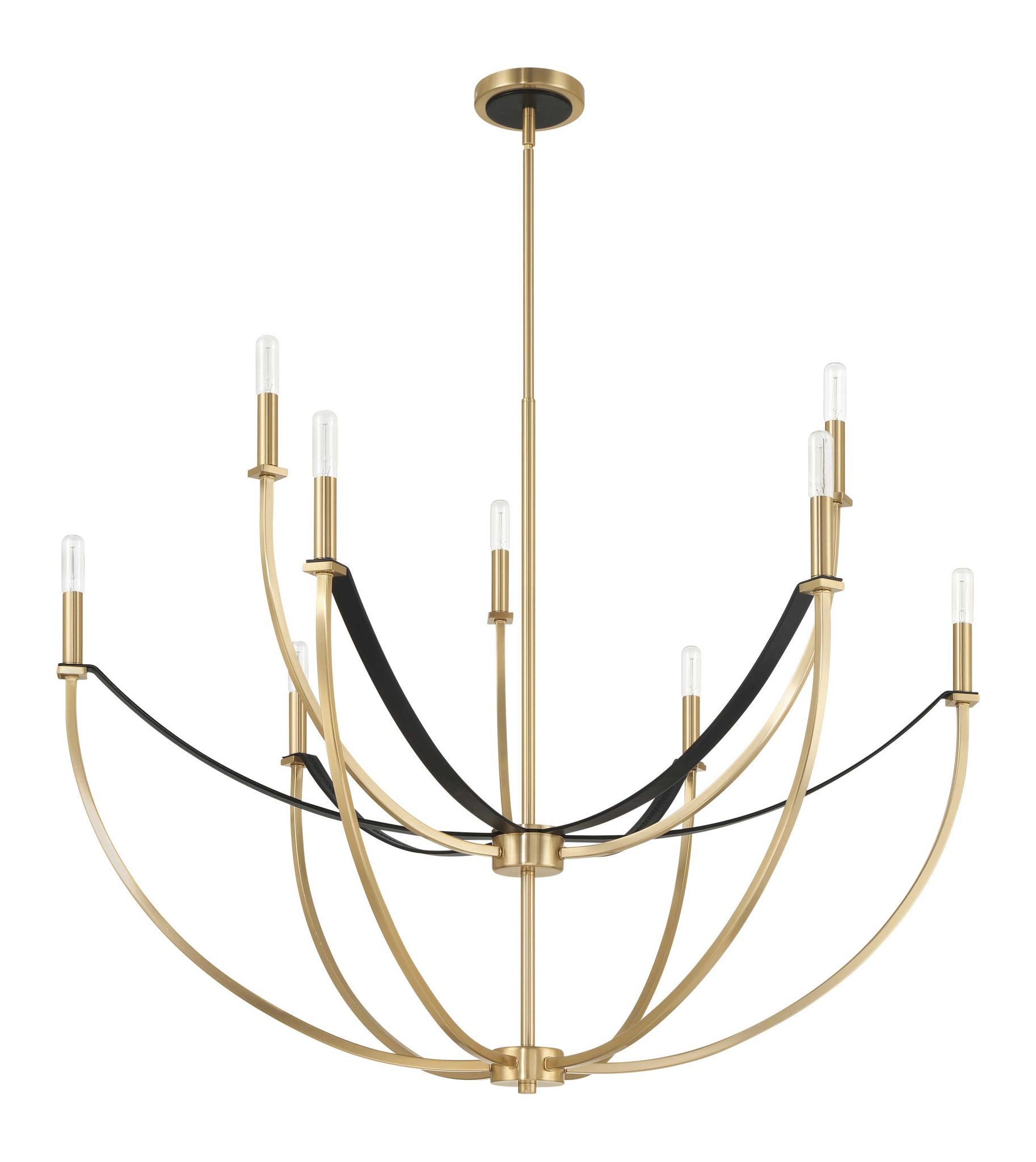 Découvrez SUSSEX Luminaire suspendu 9 lumières, fini bronze champagne avec cuir noir, 40,25po Longueur, 27,63po Hauteur, 9 x 60W, E12