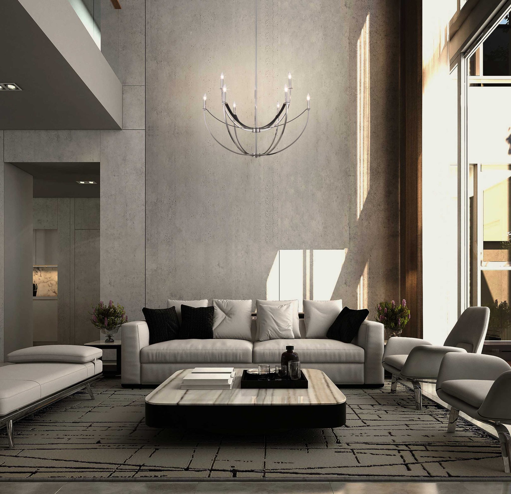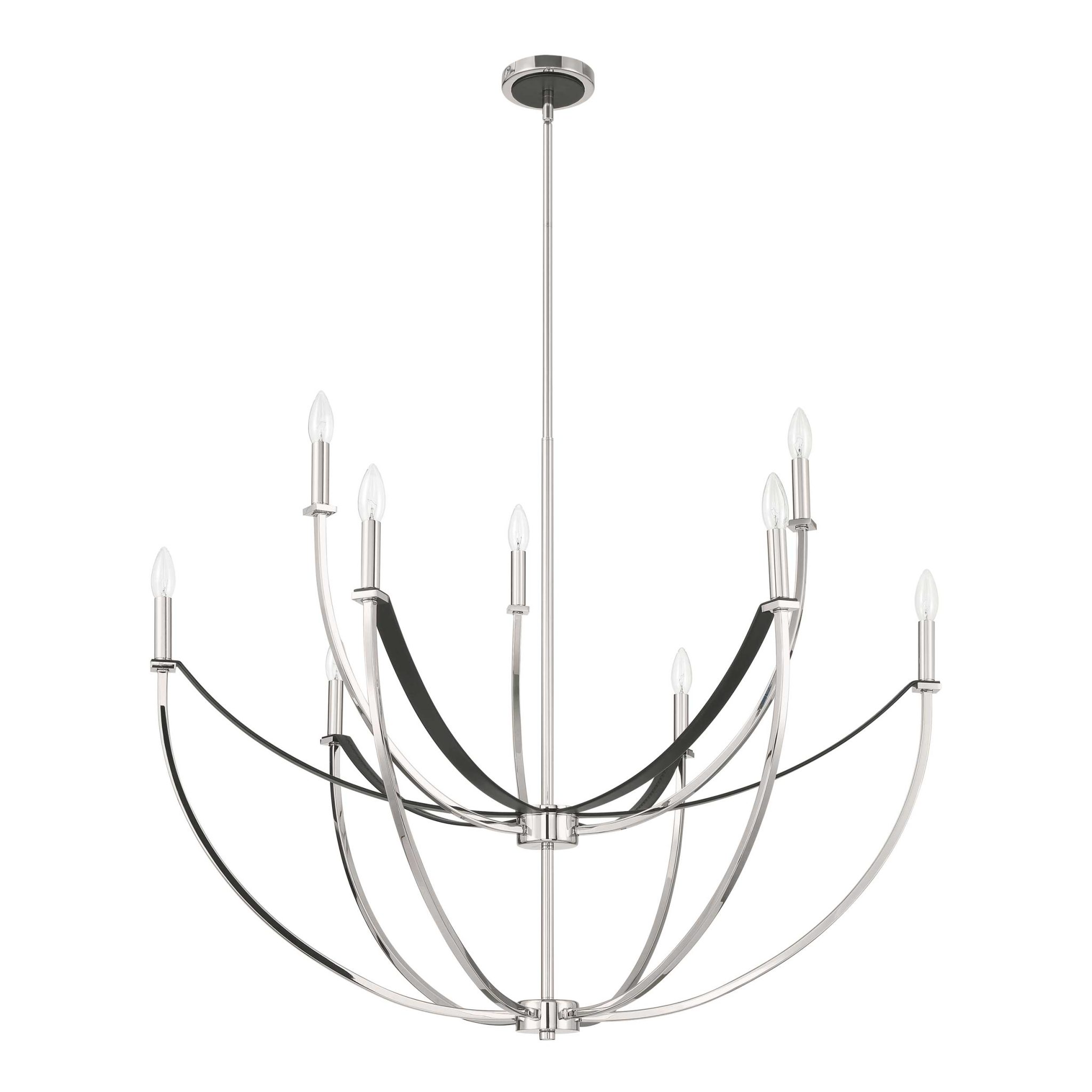 Découvrez SUSSEX Luminaire suspendu 9 lumières, fini nickel poli avec cuir noir 40,25po Longueur, 27,63po Hauteur, 9 x 60W, E12