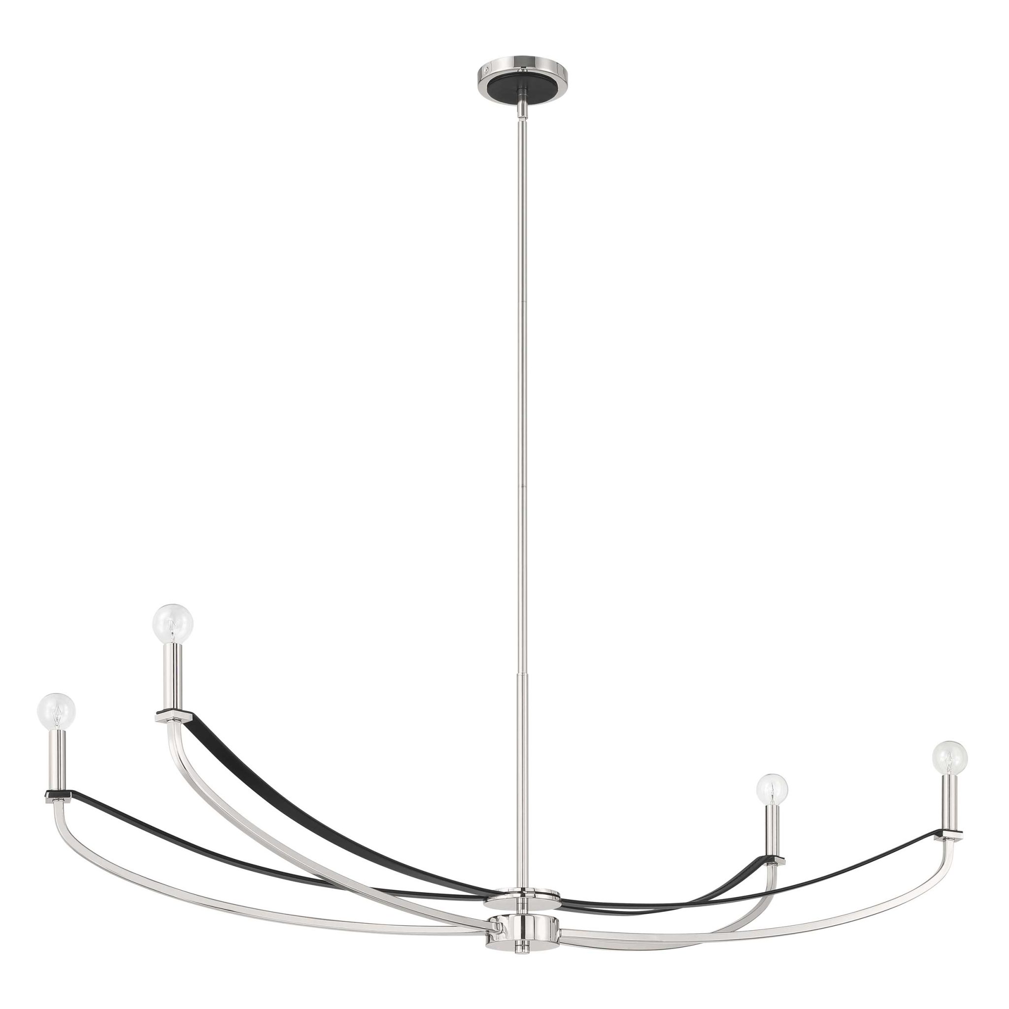 Découvrez SUSSEX Luminaire suspendu 4 lumières, fini nickel poli avec cuir noir 49,25po Longueur, 11,88po Hauteur, 4 x 60W, E12