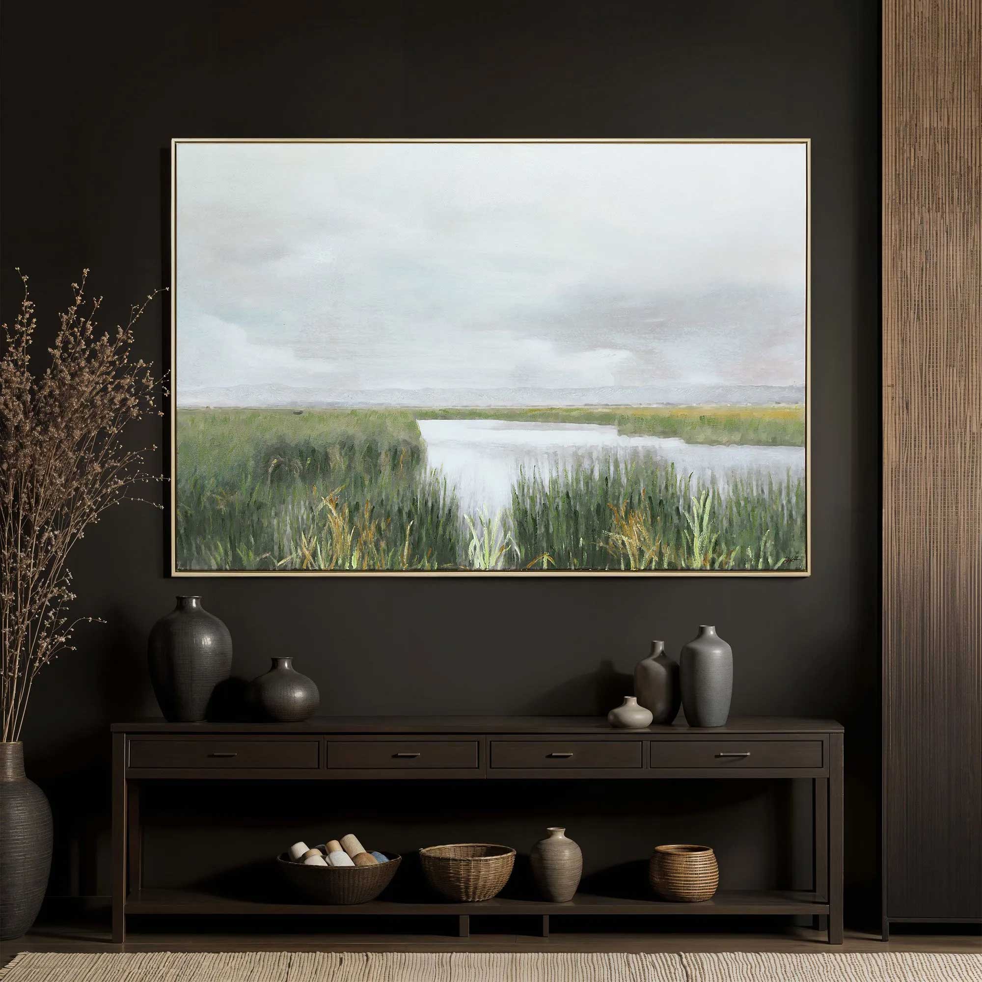 Créée au gré de la perspective abstraite de l’artiste, cette œuvre murale jettera un regard tout neuf sur les paysages traditionnels. Imprimée sur une toile de coton et de lin de haute qualité rehaussée de détails peints à la main et bordée d’un nouveau cadre en bois blanchi, suspendez-la dans toute pièce transitionnelle pour attirer immédiatement l’attention.