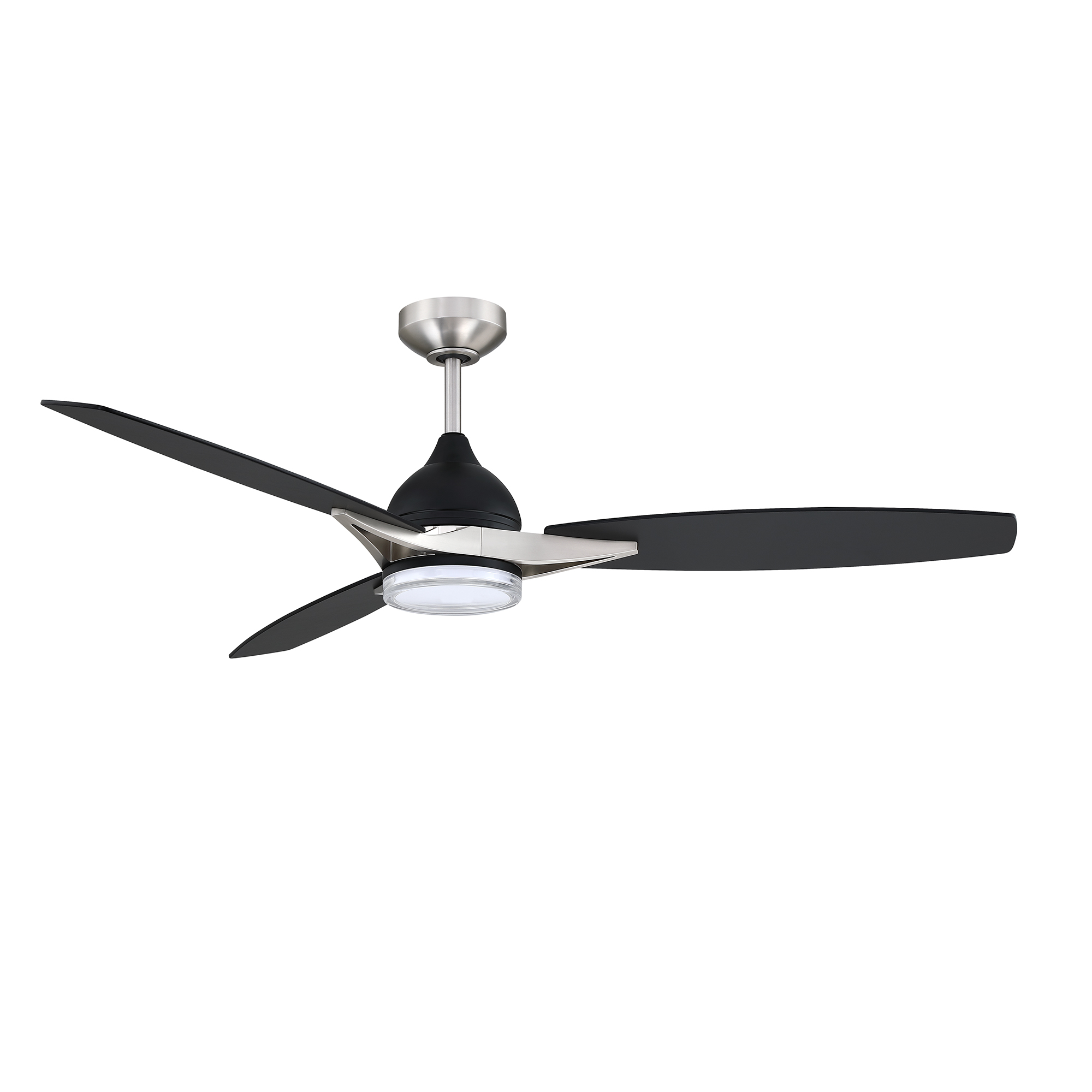 Découvrez NOVUM Ventilateur 3 pales avec éclairage DEL, noir et nickel satiné, contrôle inclus, 56po Longueur, 20W DEL intégré, 1700 Lumens, 3CCT